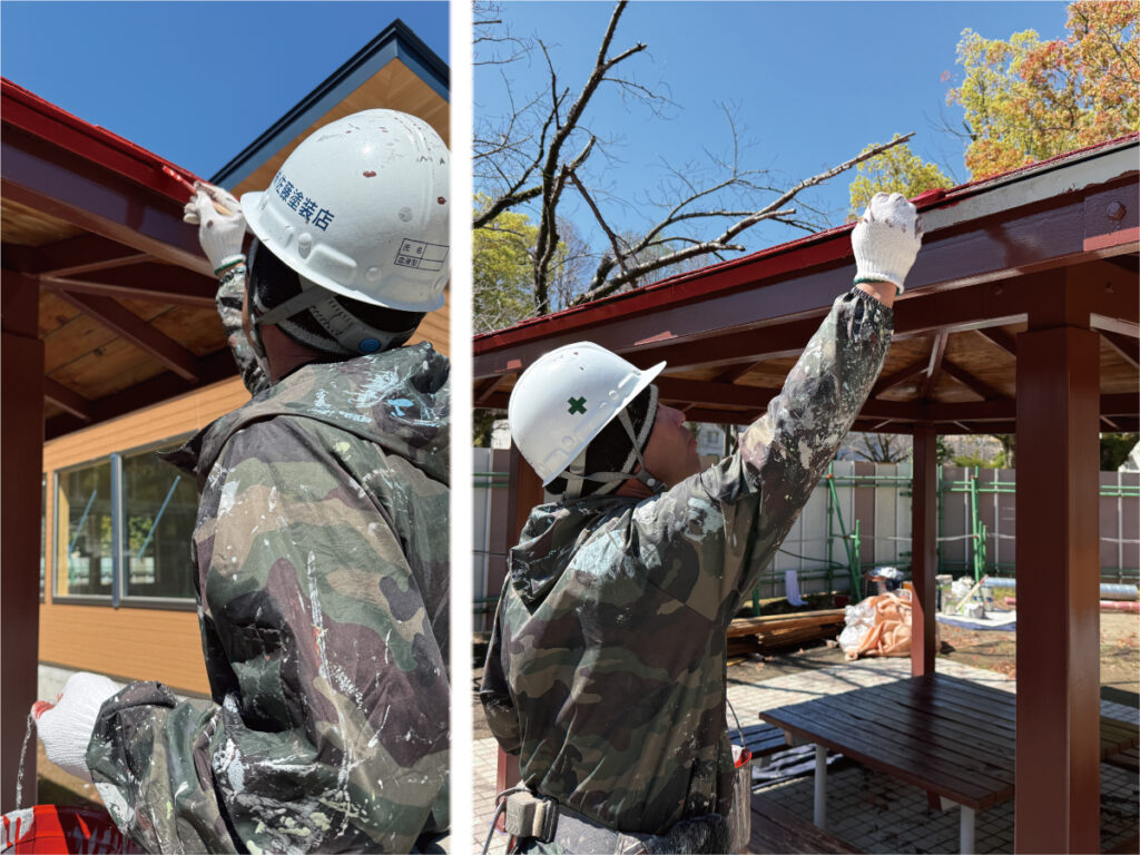 公園の「屋根付きベンチ」塗装を行いました!