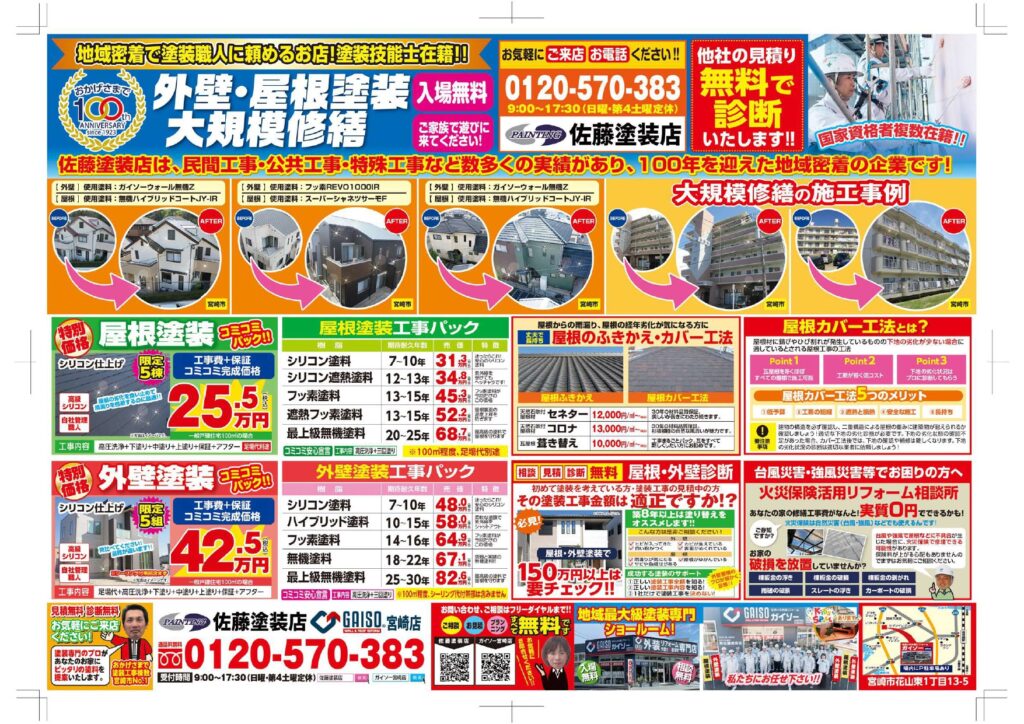 event 2025年11月 最新チラシ 会場 ガイソー宮崎店 会場住所 宮崎県宮崎市花山手東1丁目13-5 アクセスマップを確認する >> 一言 塗装専門のプロがあなたのお家にぴったりの塗料を提案いたします Application イベントへのお申し込みはこちらから STEP.1 必要事項の入力 STEP.2 入力内容の確認 STEP.3 お申し込み完了 STEP.1 必要事項の入力 STEP.2 入力内容の確認 STEP.3 お申し込み完了 STEP.1 必要事項の入力 STEP.2 入力内容の確認 STEP.3 お申し込み完了 必須イベント名 必須参加希望日 必須参加人数 必須お名前 必須フリガナ 必須メールアドレス 任意郵便番号 住所検索 必須住所 任意電話番号 任意お問い合わせ内容 ※当社が保有する個人情報に関して適用される個人情報保護法およびその他の法令・規範を遵守いたします。内容をご確認の上、よろしければ上記の「入力内容を確認する」ボタンを押して下さい。 ※このサイトはreCAPTCHAを利用しており、下記内容の他、Googleプライバシーポリシーおよび利用規約が適用されます。 個人情報利用目的 ・お客様のご要望に合わせたサービスを提供させていただくための各種ご連絡。・お問い合わせいただいたご質問への回答のご連絡。尚、お客様から収集する個人情報は弊社の定めるプライバシーポリシーに則って厳重に管理いたします。 プライバシーポリシー 株式会社佐藤塗装店では、佐藤塗装店ホームページ(以下、「当サイト」といいます。)の運営に際し、お客様のプライバシーを尊重し個人情報に対して十分な配慮を行うと共に大切に保護し、適正な管理を行うことに努めております。 1.個人情報利用目的 お客様の個人情報は、原則として、当社のサービスに関する情報をご提供する目的や当社に対するご意見、ご要望に関する今後の改善、及び、問い合せに関するご回答のために利用致します。それ以外の目的で利用する場合は個人情報をご提供いただく際に予め目的を明示しておりますのでご確認下さい。 2.第三者への情報提供 お客様の個人情報は、以下の場合を除き第三者に開示、提供、譲渡、することは致しません。1.法的拘束力がある第三者機関からの開示要求がある場合2.協力業者と提携して業務を行う場合(協力業者にも適切な管理を行います)3.お客様本人の同意があった場合 3.開示等の請求等 お客様等が個人情報の利用目的の通知、個人情報の開示、訂正、追加若しくは削除を希望される場合は、希望される方が本人であることを確認の上速やかにこれに対応いたします。 4.安全管理 個人情報保護に関して適用される法令、規範を遵守するとともに正確かつ最新の内容に保ち安全管理のための必要かつ適切な措置を行います。 5.従業員の監督 弊社では、お客様等の個人情報の安全管理が図られるよう従業者に対する必要かつ適切な監督を致します。また、従業者に対して個人情報の適正な取り扱いの確保のために必要な教育を実施します。 6.クッキー(Cookie)の利用 当サイトではクッキー(Cookie)を利用しております。クッキー(Cookie)を使用する目的はお客様が当サイトを再訪された際に便利にお使い頂くことを目的に使用しており、お客様のプライバシーを侵害するものではありません。 7.適用範囲 本プライバシーポリシーは当サイト内にのみ適用されます。当サイトからリンクの張られている他のサイトでの個人情報保護についてはリンク先のプライバシーポリシーによって行われます。 8.漏えい発生時の対応 お客様等の個人情報の漏えい等が発生した場合には、事実関係を速やかにお客様等に通知するなど、迅速かつ適切に対応します。 9.継続的改善 弊社では、個人情報保護に関する内部規定の整備、従業者教育及び内部監査の実施などを通じて、社内における個人情報の取り扱いについて継続的な改善に努めます。 一覧へ戻る