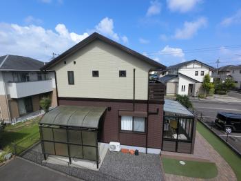 全体的に色褪せなどがきになり、塗装メンテナンスの時期と考えていた。屋根の一部破損や外壁の浮きなども気になっている。 耐候性の高い塗料を提案してほしい。(K様より) |