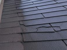 | 外壁の色褪せ・汚れの付着が確認できます | 屋根も塗膜の変色が確認できます | コロニアル屋根が一部破損している箇所があります |