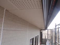 | 上塗2回目の状況です | ヤニやシミ止め効果に優れたエマルション塗料です | 軒裏の塗装が完了しました |