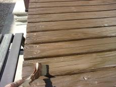 | ウッドデッキの塗装が完了しました | カーポートの洗浄状況です | クリーナーを用いて洗浄していきます |