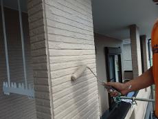 | 表面の毛羽を除去し、密着を高めます | 上塗1回目状況です | ケンエースG-Ⅱを塗布していきます |