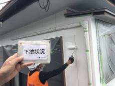 はじめに外壁に付着した古い塗膜や汚れを落とすために高圧洗浄を行い、その後塗料で窓などを汚してしまわないよう養生で保護してから塗装作業にはいります。続いて上塗り塗料が外壁材に密着するよう下塗りを行います。