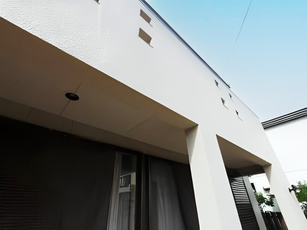 調査から屋根以外の箇所に劣化と汚れが確認できたので、ご依頼いただいた屋根上のテンピ撤去・エコキュート交換と共に、各部の塗装工事をご提案いたしました。