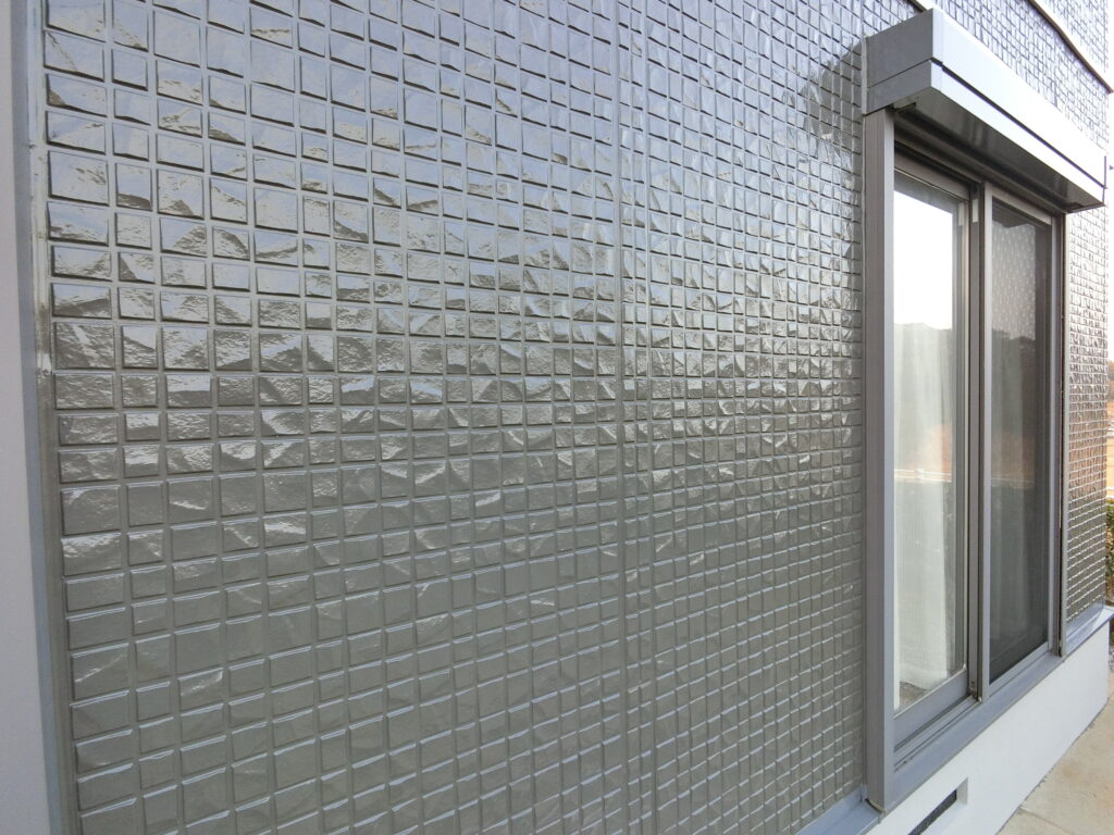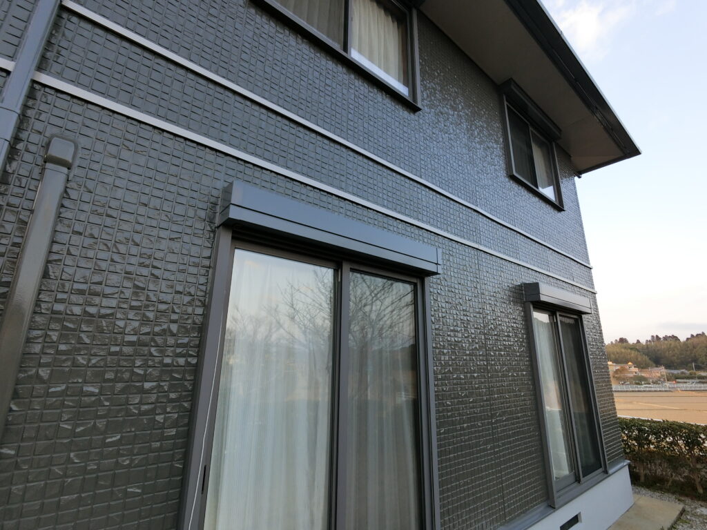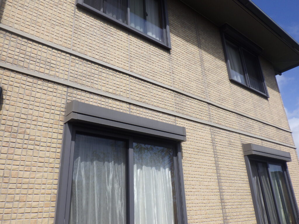 外壁やその間のシーリングなど、全体として色あせやチョーキング(外壁を指で触れたときに白い粉が付く劣化現象)が見られます。洗浄や研磨で丁寧に藻などの汚れや剥離した古い塗料を洗い流し、新しい塗料がより密着しやすくくした上で施工していきます。