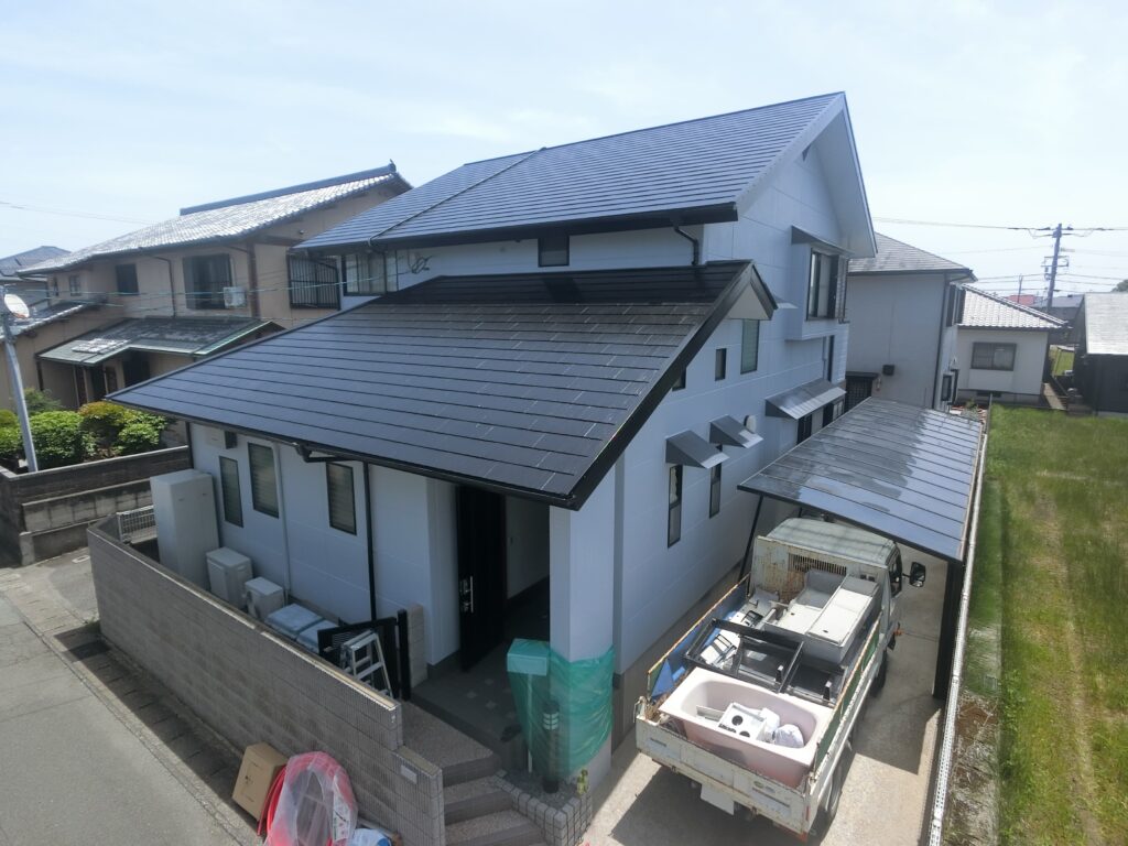 【工事内容】屋根・外壁塗装工事 【使用商材】屋根:ルーフガードネオMUKI 外壁:ガイソーウォール無機Z |