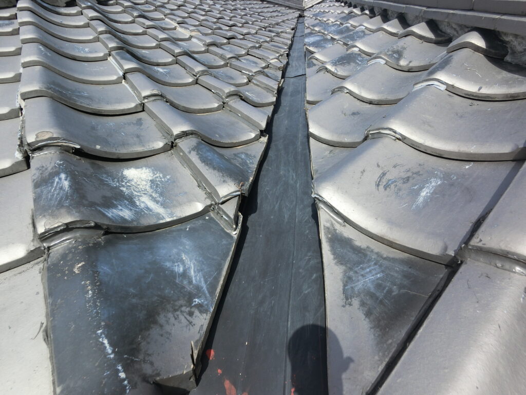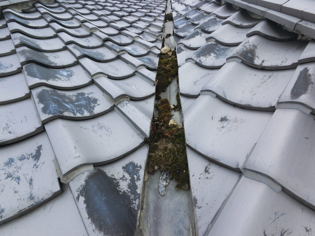 今回はサビや歪み、堆積物による詰まりが見られたため、谷板金の交換工事を行いました。