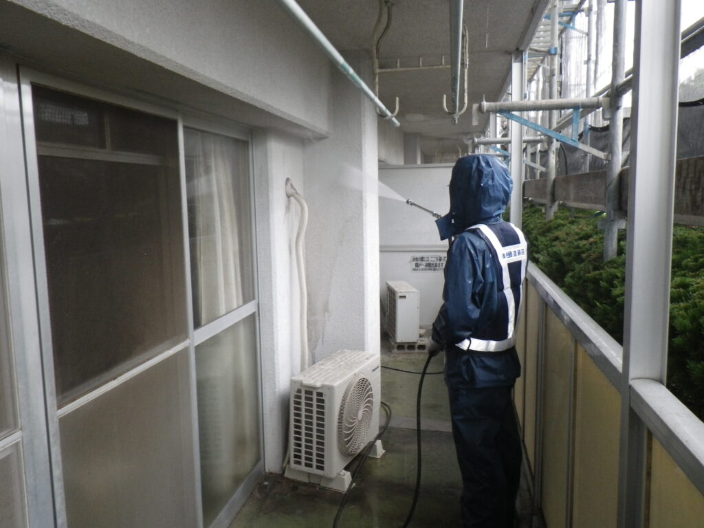 バルコニー外壁 高圧洗浄
