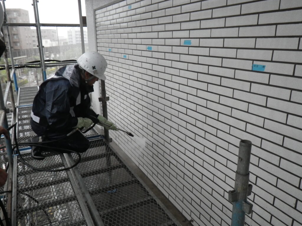 下地改修、洗浄後、下地調整材スチップル塗布