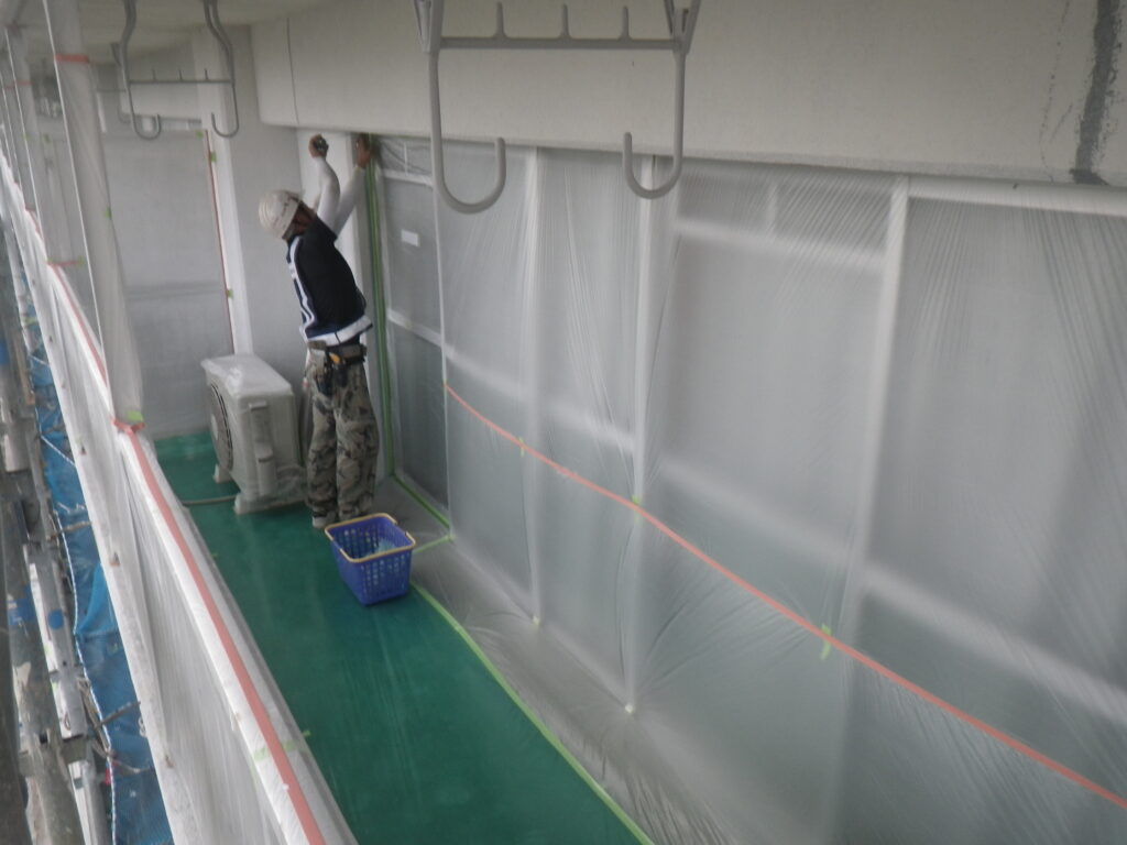 バルコニー 塗装前の養生