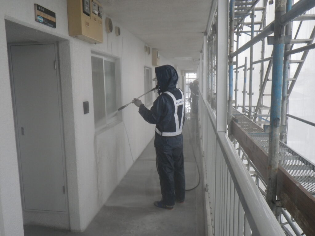通路壁-高圧洗浄