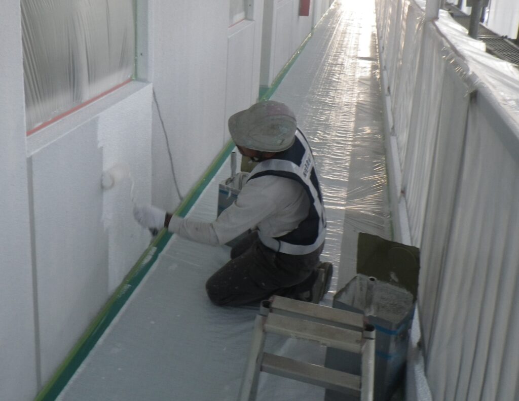 下地改修、洗浄後、専用塗料塗布状況